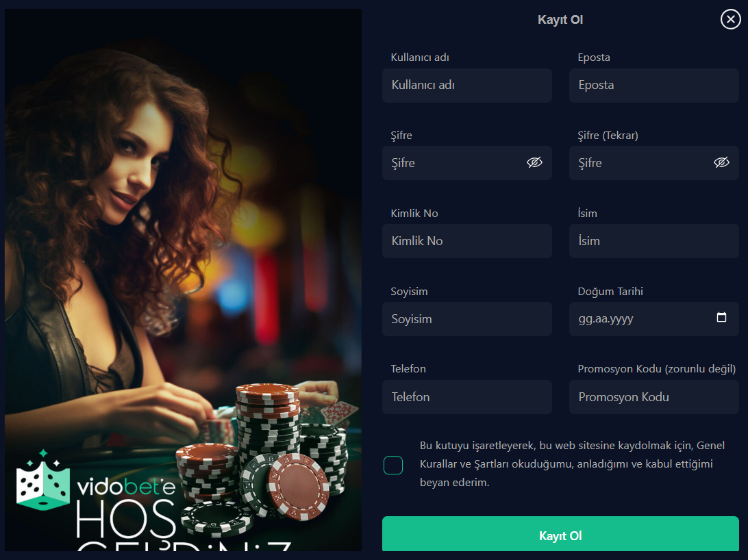Vidobet üye olmak için aşağıdaki bilgilere ihtiyacınız olacaktır: